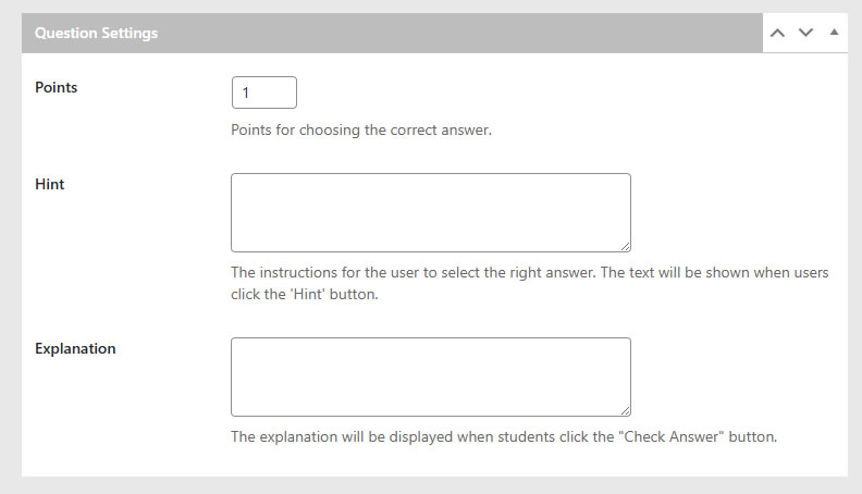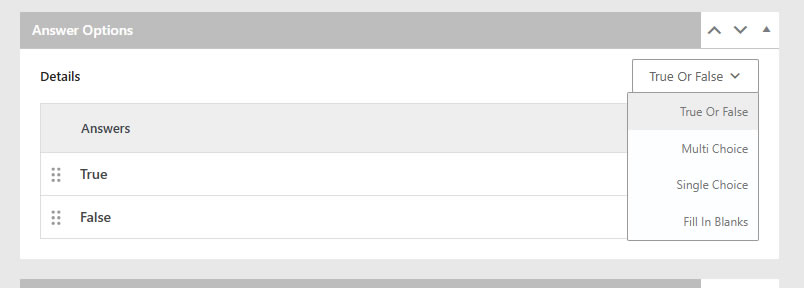 Scroll down to the answer section. Select the the type of answer from the drop down menu as follows