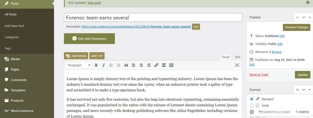 To add a Post, click on Posts menu on the left panel of the website in the Admin Dashboard. Click on Add Post and a screen allowing you to add details of the post will appear. Add the Title of the post and the content, link the post to the appropriate category. Once done publish the post.