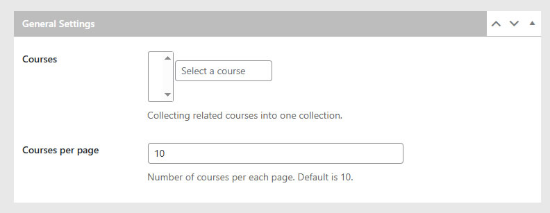 Click o hover over LMS and click on Collections, click on the Add New Collection button at the top and a screen for you to add collection information starting with Title, a Description of the collection and General Settings section for the collection. In the General Section, enter the three or more letters of the course you want add and the course will show in the drop down menu for you to select. Repeat for all courses you want to add.